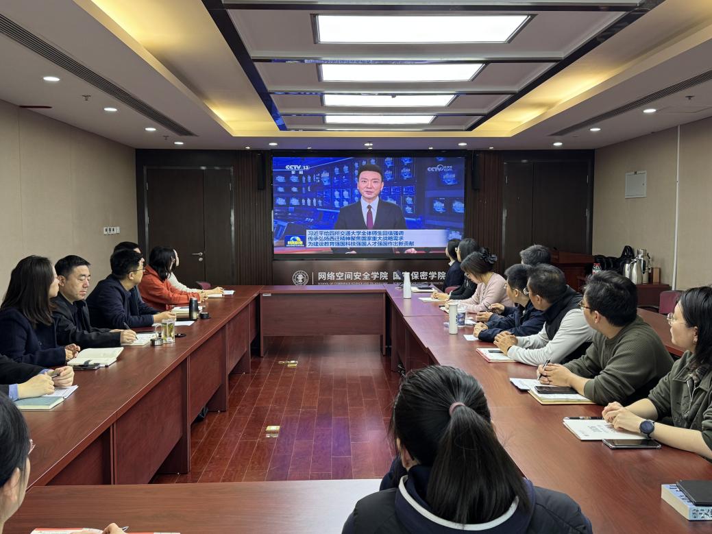 在四所交通大学共同迎来建校130周年的重要时刻,习近平总书记的重要回信,充分体现了以习近平同志为核心的党中央对高等教育事业的高度重视和对交大师生的亲切关怀,为学院办学治院、育人育才、科技创新指明了前进方向、提供了根本遵循。下一步,网安学院将持续深入学习贯彻习近平总书记重要回信精神,不断创新学习形式、拓展学习深度,切实将学习成果转化为推动学院改革发展的强劲动力与实际成效,引领全院师生谨记嘱托、奋勇前行,在服务国家重大战略需求方面展现更大担当作为。