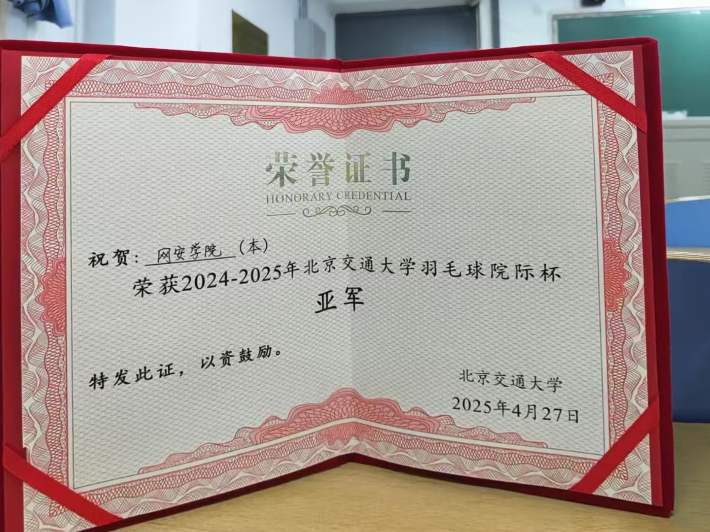 为了丰富同学们的课余生活,培养永争第一的体育精神,增强学院凝聚力,促进同学之间的合作交流,2025年4月21日-27日,我院学生羽毛球队参加太阳集团tyc9728羽毛球院际杯赛事决赛并取得优异成绩。