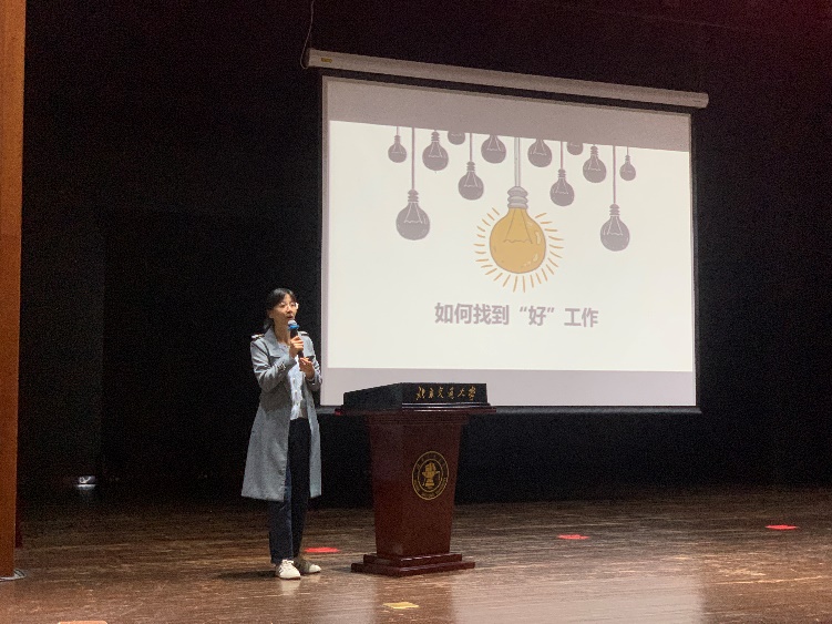 温馨从学校整体就业情况、就业形势、就业政策、就业手续等方面进行了详细解读,对我校签约管理服务、就业平台和就业创业相关活动进行了详细讲解。梁妍娇以如何找到“好”工作为题,对学生求职岗位匹配、求职方向确定、简历制作要点及面试技巧提升等多个方面进行了系统讲解,在职业发展指导的基础上提高学生的求职竞争力。