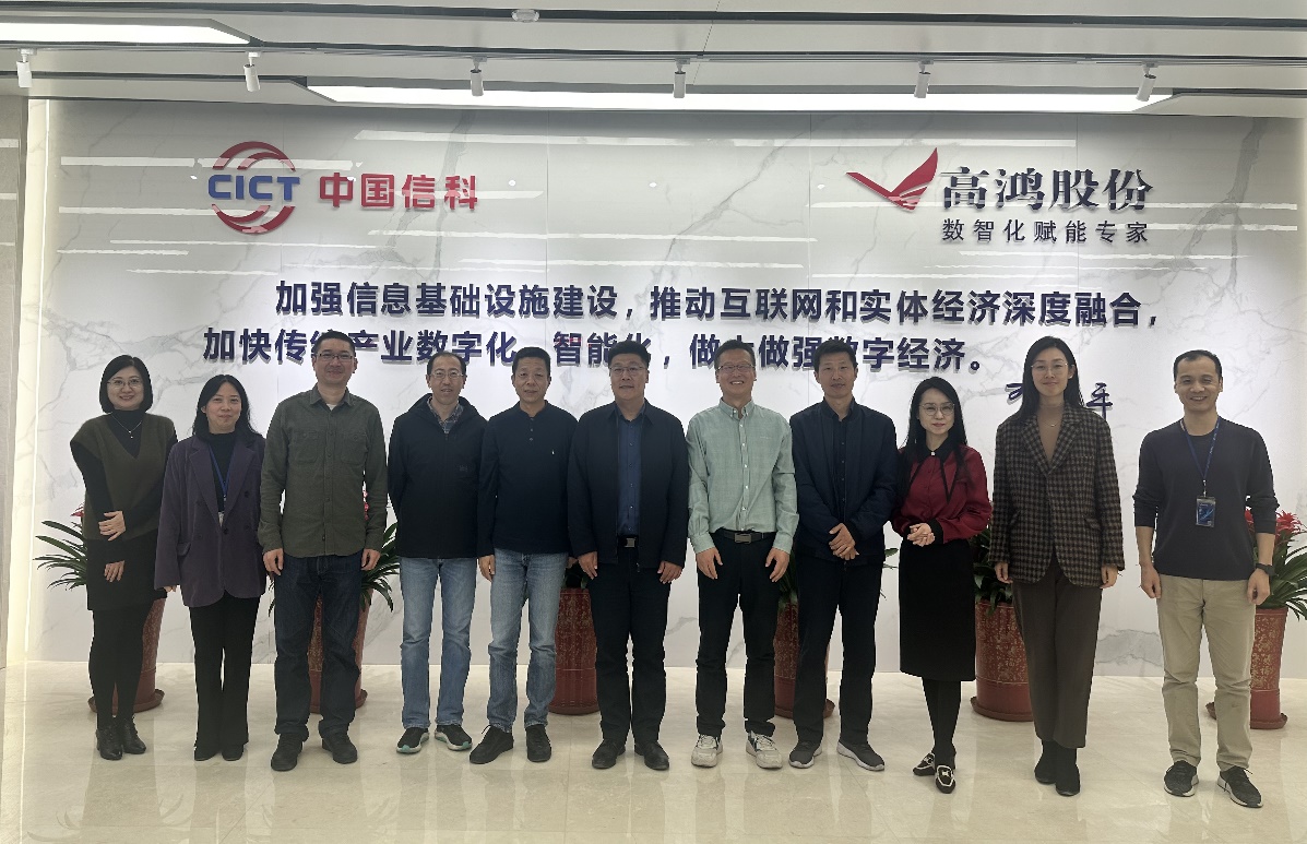 4月2日,保密学院常务副院长杜晔一行赴大唐高鸿网络股份有限公司(以下简称“高鸿股份”)交流洽谈合作,高鸿股份总工程师王道谊、副总经理、纪委书记翁冠男、人力商务总监康雨辰、副总工程师兼可信计算部总经理郑驰出席交流活动。