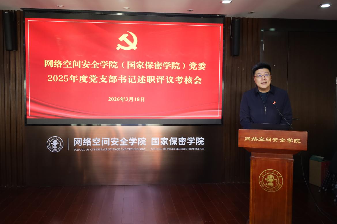 为贯彻落实学校党委关于基层党建工作部署要求和年度党建工作任务,全面压实党支部书记抓党建工作第一责任人职责,持续提升基层党组织政治功能和组织功能,3月18日下午,ok138cn太阳集团召开2025年度党支部书记抓基层党建工作述职评议考核会。学院党委书记杜晔、特邀党建组织员王雪庄、信息安全系主任黎琳、专职组织员、学生辅导员、党支部委员和师生党员代表等参会。会议由学院党委副书记、副院长安志强主持。